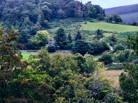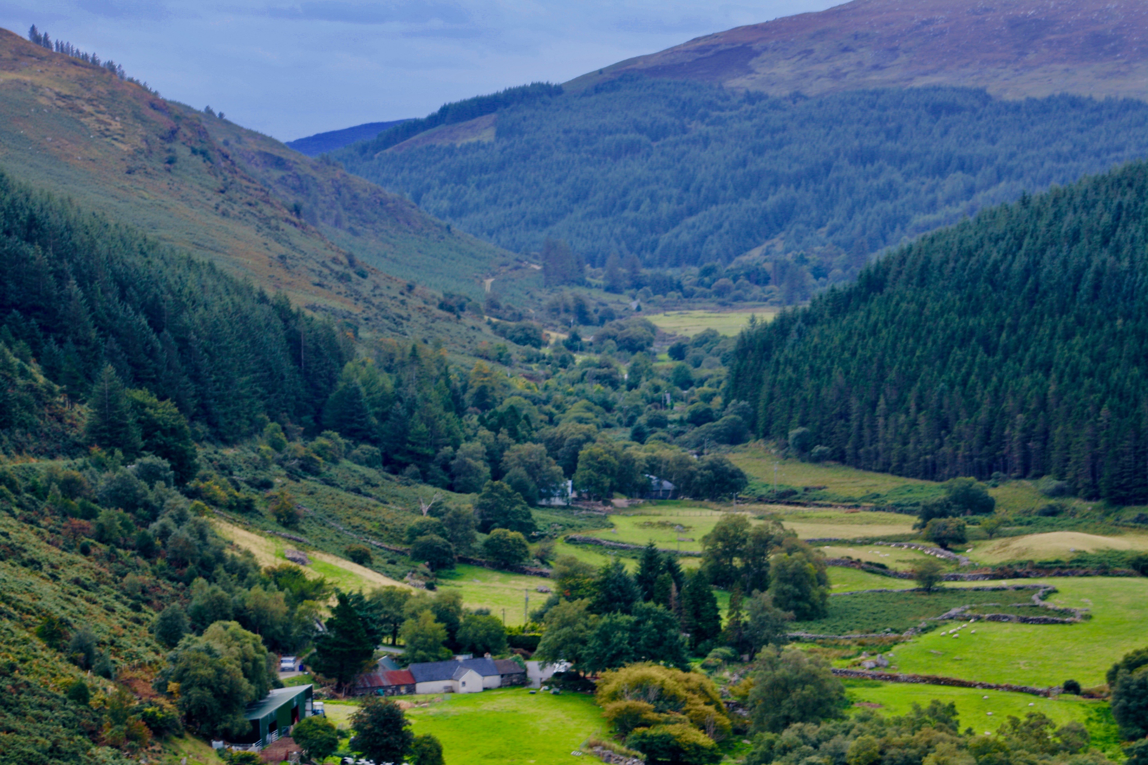 From Newgrange, I took a southwesterly route to Blessington, where I stopped in for breakfast. My Irish oatmeal came with fresh berries at Crafternoon Tea. The shop also sold handmade items – everything from knitted coasters to woolen hats, all as delightful as the food and drink. A narrow less-traveled road led me through County Wicklow. When I reached the National Park, however, the landscape bore little resemblance to a forest. I can only describe it as my idea of an English moor or heath.