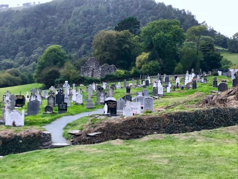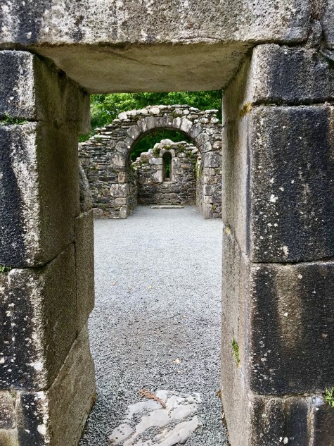 I could not have imagined, much less predicted, the mesmerizing effect that Glendalough would have on me. Its charms left no wonder as to why St. Kevin chose this particular area as his place of solitude. The peaceful, majestic woods gave reason enough for the existence of the ruins of the monastic settlement, but I found the remains of the ancient stone structures as compelling as the natural beauty of the Valley of Two Lakes.