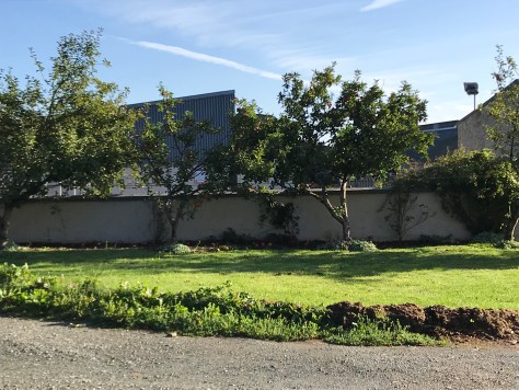 Winding country lanes led me to my first AirBnB – a dairy farm in Ramsgrange, near the border between County Kilkenny and County Wexford. Somehow I never spotted Phil and Shirley’s cows, but that did not stop me enjoying their (raw) milk in my morning tea. Phil and I shared breakfast the next morning, and he sent me off with a couple of apples picked fresh from the trees you see in the photo above (left). Irish hospitality at its best!
